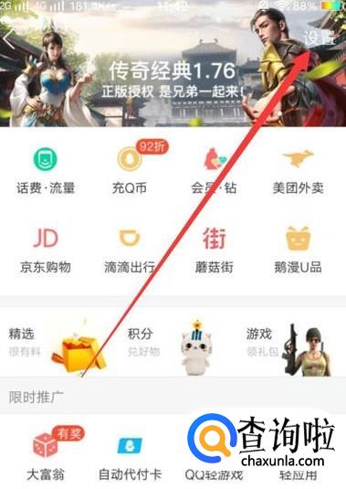 进入之后,点击图示位置的“设置”,进入下一页面,如图所示。