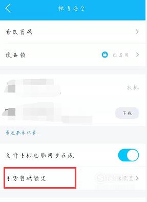 在账号安全界面选择“手势密码锁定”,如下图所示。