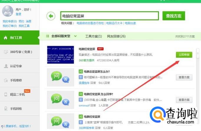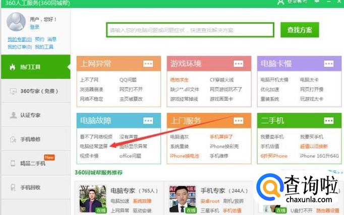 在人工服务选项界面点击选择“电脑经常蓝屏”