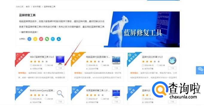 进入网站之后就可以直接看到蓝屏修复工具,如果自己的是win7系统的话可以直接点击第一个下载安装。