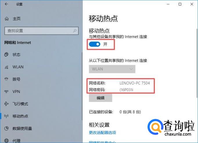 打开后如图所示,下面是有网络名称和密码的,我们用我们的iphone搜索无线网络名称,然后输入密码就可以使用电脑的网络了。