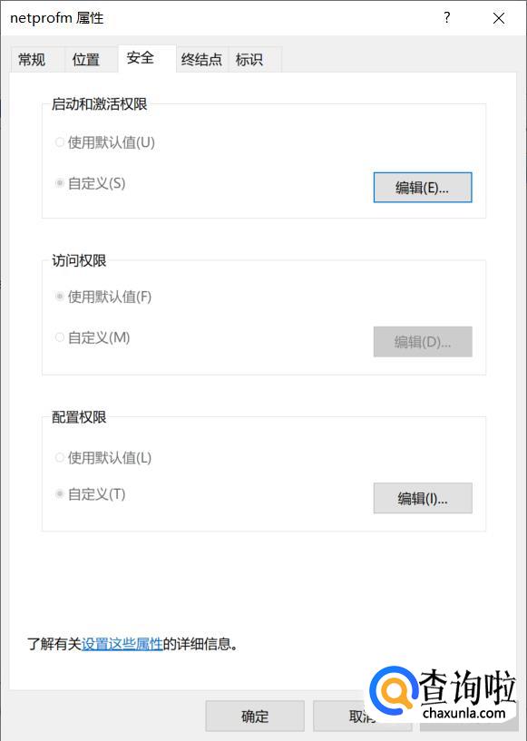 在属性的对话框中,选择安全选项,再选择启动与激活权限,点击下方的自定义选项,然后点击后面的编辑。