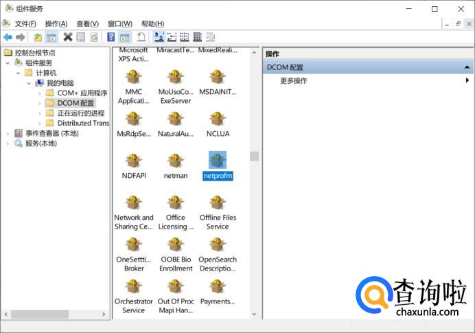 点击我的电脑后选择DOCM配置,之后再右边的选项列表中找到netprofm,用鼠标右键点击选择属性。