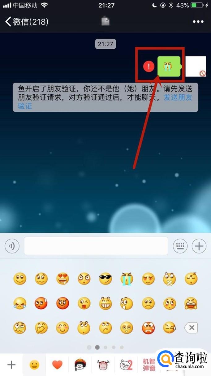 如果对方拉黑或者是删除了你,你的信息是无法送给对方的。只会显示红色的感叹号,你学会了吗?赶快动手试一试吧!
