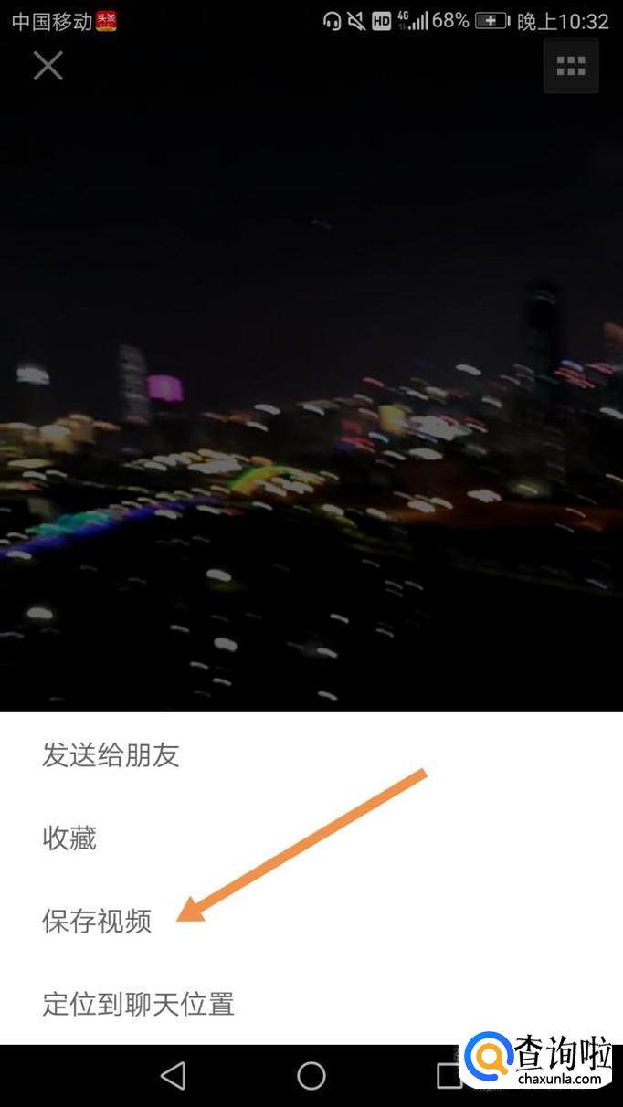 然后点开微信小视频,长按轻按小视频,就会出现几个选项,选择保存视频,如下图。