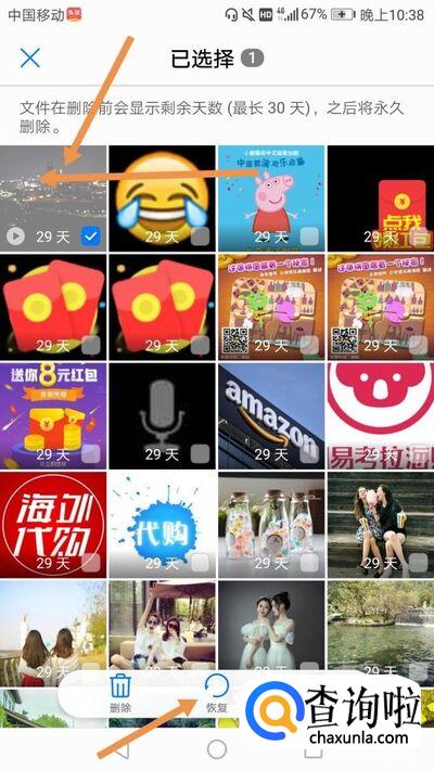 就可以看到我们删除的视频,点击视频,然后点击恢复就可以了,如下图。