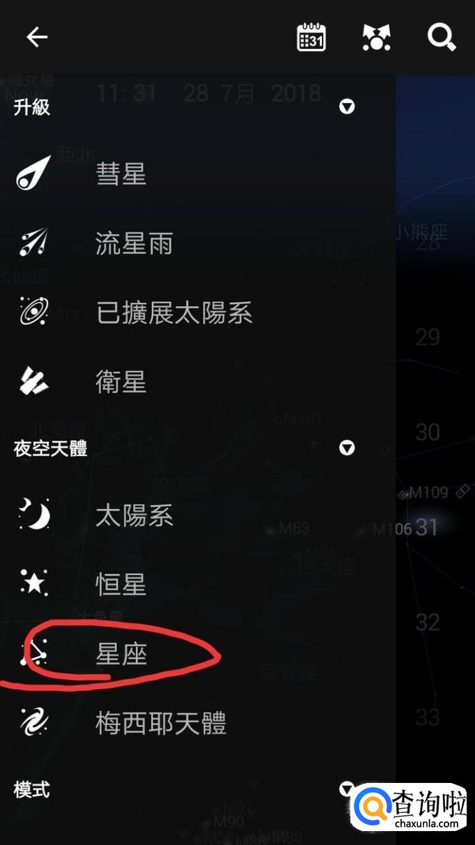 例如点击“星座”。