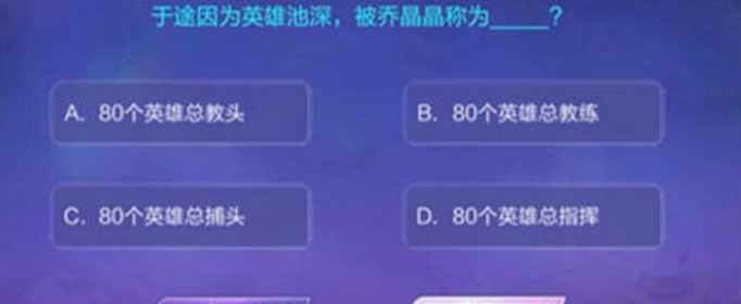 于途因为英雄池深,被乔晶晶称为80个英雄总教头。《与你相遇,共赴荣耀》活动中玩家在操纵棋子移动过程中有机率触发彩蛋事件,可通过答题的方式完成彩蛋,答题成功后可获得额外步数奖励。