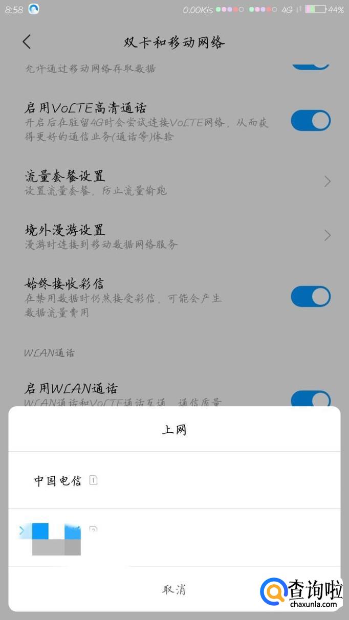 我们主要讲的是怎么切换数据流量的双卡切换,如果拨打电话的时候,系统都会提示选择哪张卡,如图。