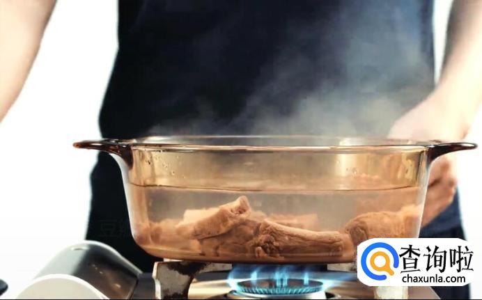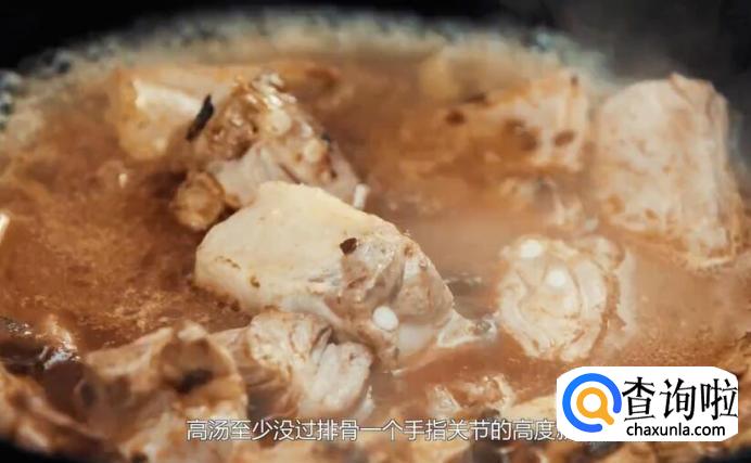 高汤至少没过排骨一个手指关节的高度就可以了。