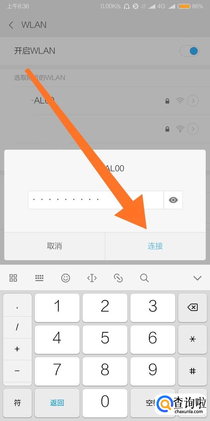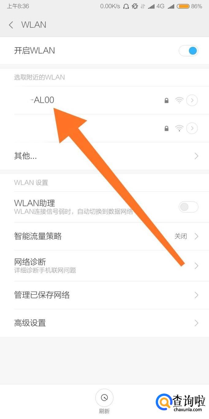再打开“开启WLAN”选项,接着点击需要连接的热点名称。