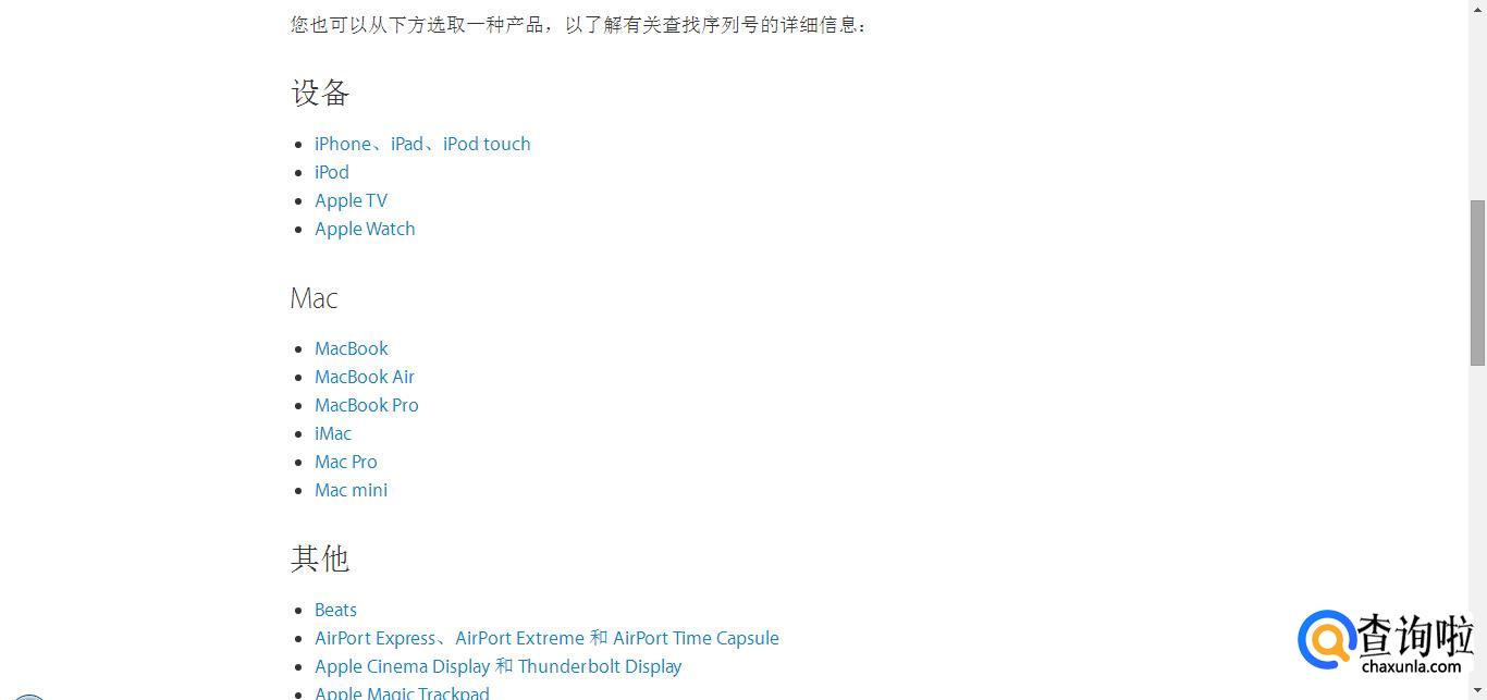 随后页面中,我们可以在页面中看到所有苹果产品的列表,你想要了解哪一种产品的序列号查询方法,点击后均有非常详细的按照步骤的查看序列号的解说。