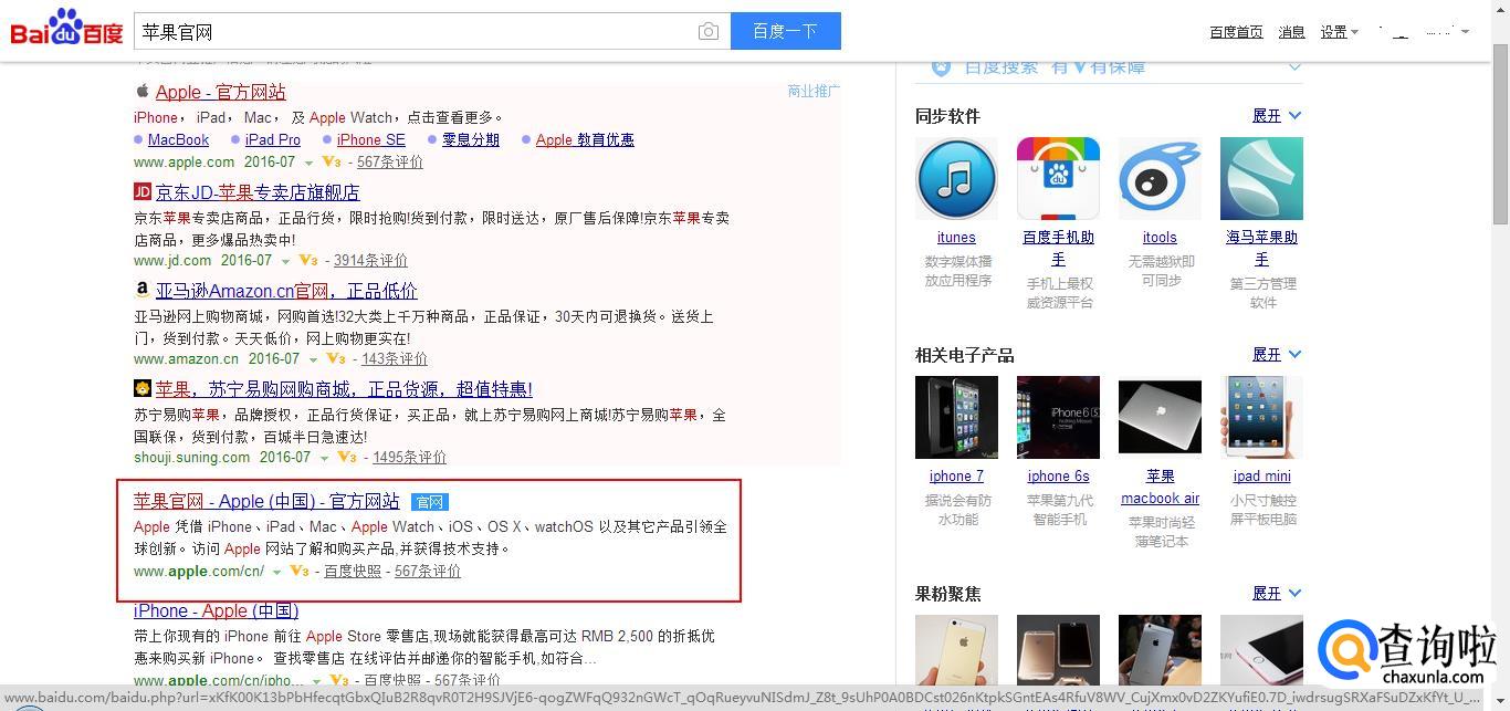 搜索“苹果官网”,点击进入。