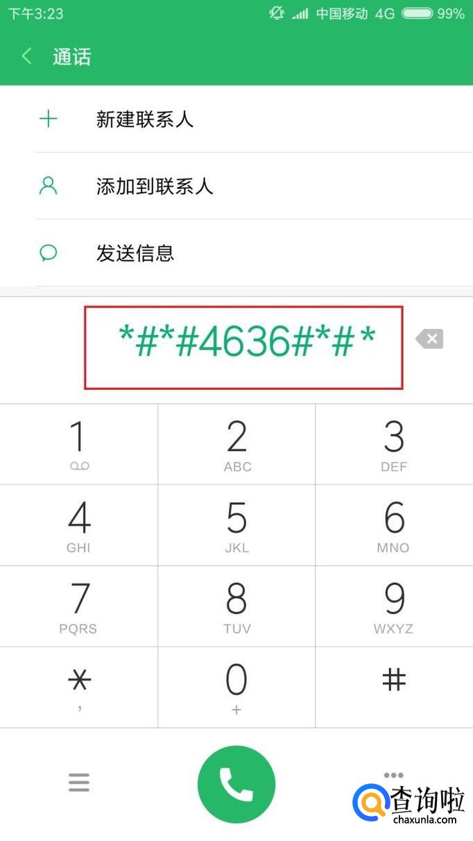 首先,在MIUI系统中,打开“电话”应用按钮,在拨号键盘页面中输入*#*#4636#*#*关键字,进入测试应用页面。