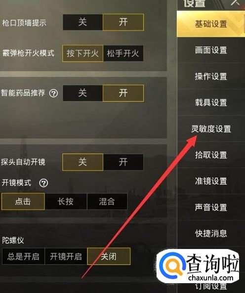进入之后,点击“灵敏度设置”,进入下一页面,如图所示。