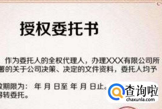 如果你的公司办理营业执照的时候,作为法人你没有办法到场的话,那么你必须出示一份授权委托书,内容主要说明一下你委托权利给经办人,让经办人全权负责你的公司营业执照的办理。