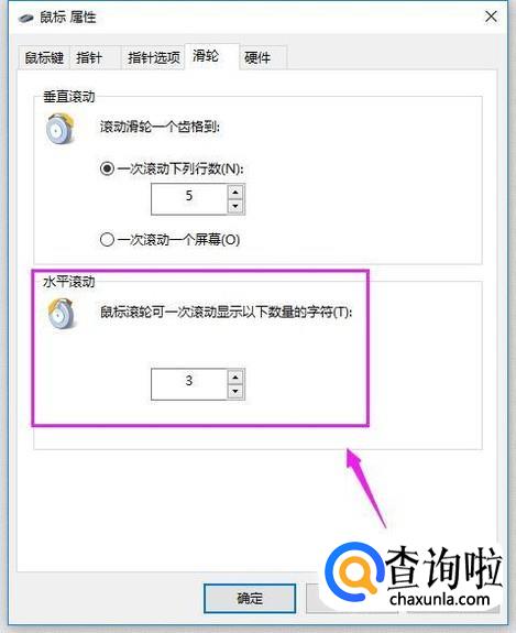 在鼠标滚轮这里,我们还可以设置水平滚动显示的字符量,如图所示。
