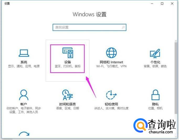 来到设置这里,我们选择“设备”,如图所示。