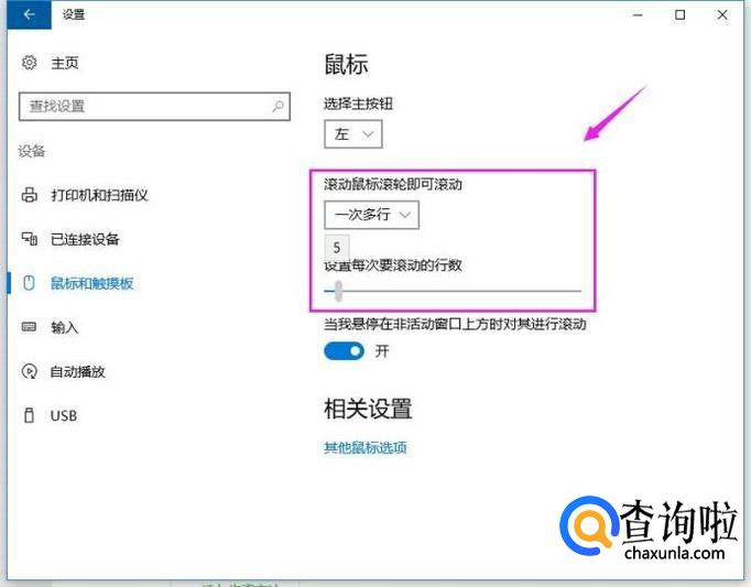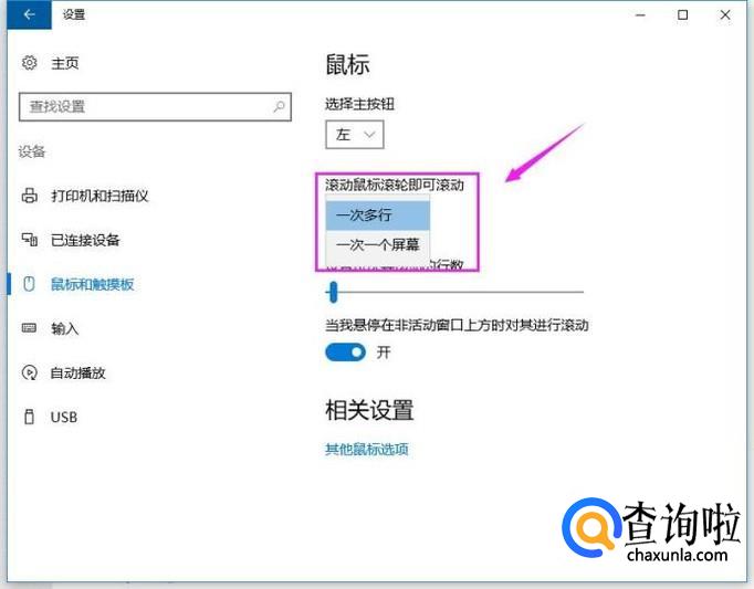 接着我们设置鼠标滚动滚轮的话,可以设置一次一个界面,也可以设置一次多行,看个人习惯了,小编就喜欢一次一个界面,如图所示。