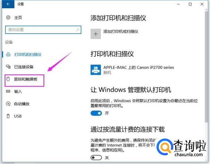 接着选择“鼠标和触摸板”,如图所示。