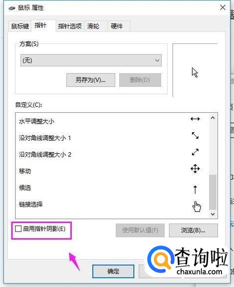 我们在鼠标指针这里,还可以启用鼠标指针阴影,如图所示。