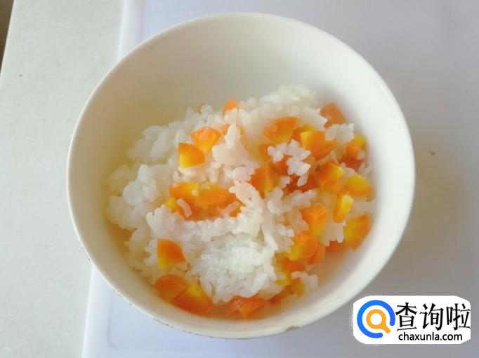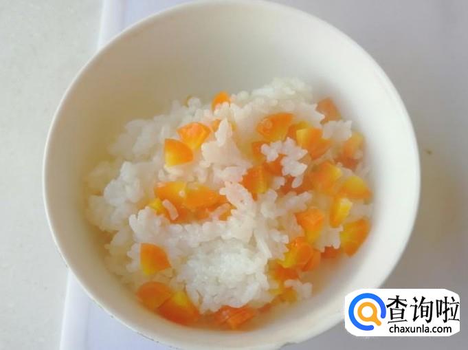 把蒸好的胡萝卜糯米大米饭,盛入碗中就可以开吃了,也可以加入适量白糖,搅拌均匀,香甜软糯可口,特别适合小孩的胃口。