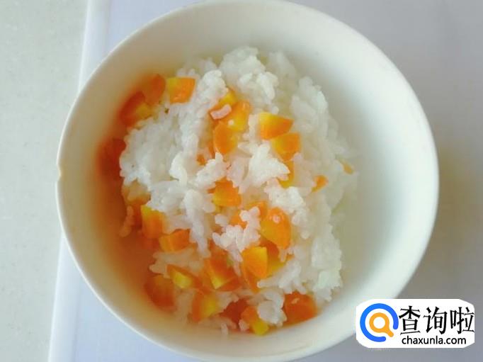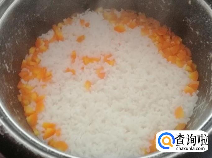 电饭锅中放好水后,加入备好的胡萝卜,盖上电饭锅盖,插上电源,按下电饭锅的煮饭键就可以了。