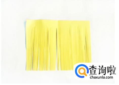 把一个长方形纸剪成须状,注意不要剪断,上方要留下一条用来粘贴胶水。