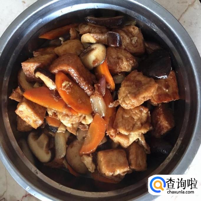 材料:香菇 胡萝卜 豆腐 蒜头 洋葱 食用油 蚝油 生抽 盐 鸡精