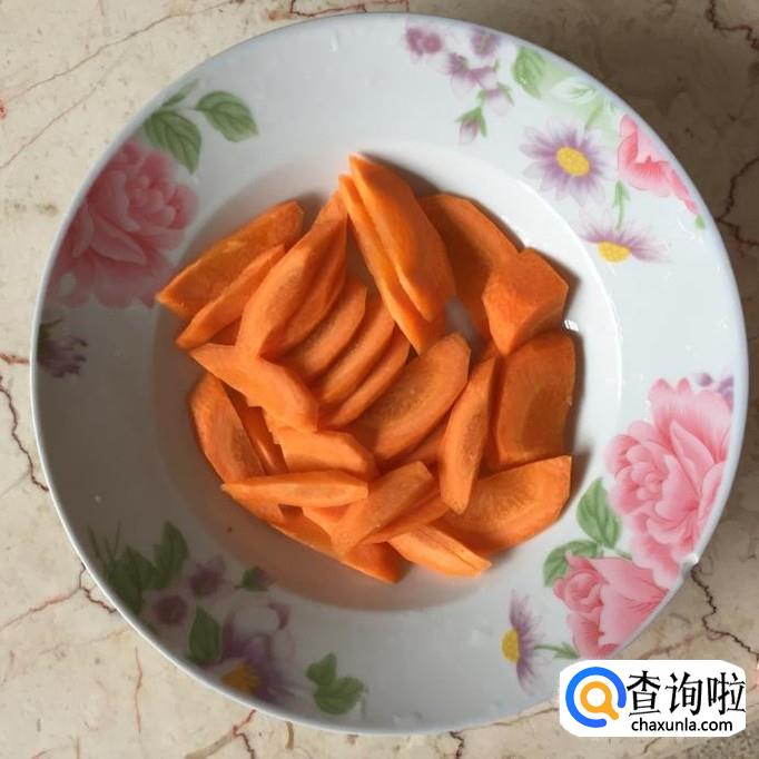 取半根胡萝卜,将胡萝卜去皮,清洗干净,切成小片;