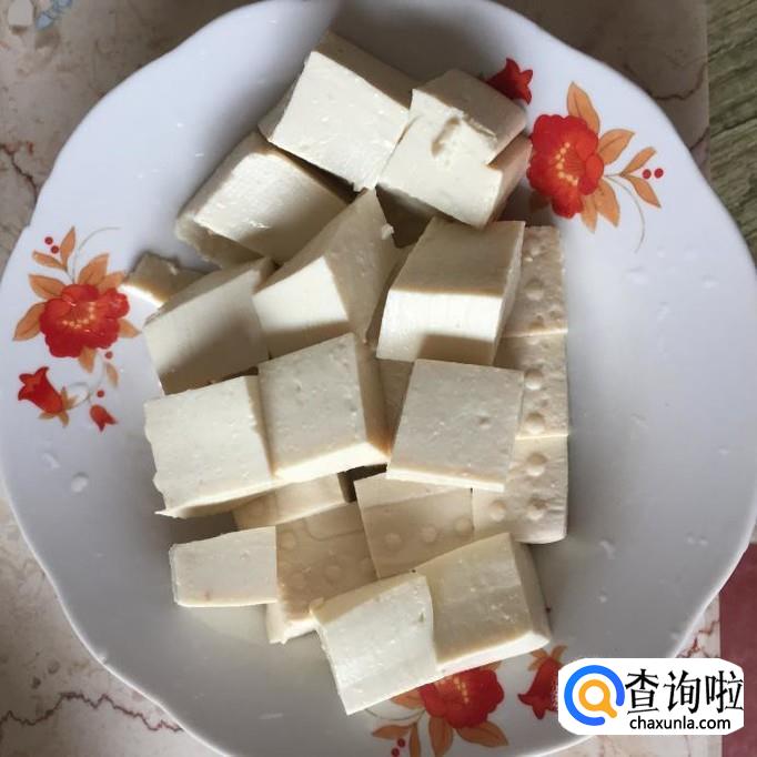 豆腐我们用的是水豆腐,将豆腐切成小块,备用;