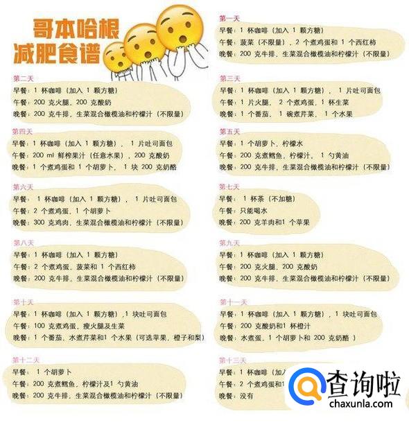首先我们需要了解什么是哥本哈根减肥法,它是目前网上流传的13天减肥食谱,其实说白了它是通过饮食的方式改善我们饮食的摄取量以达到减肥的效果。