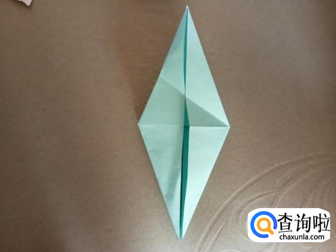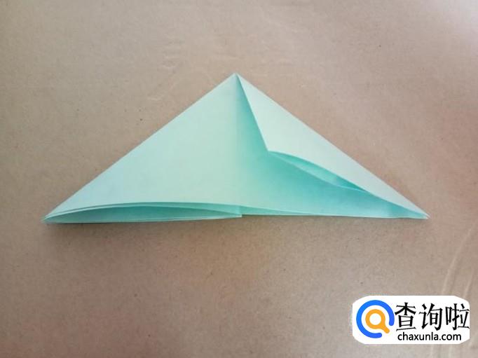 把刚折好的部分翻开,沿着折痕往里折,向上翻开。