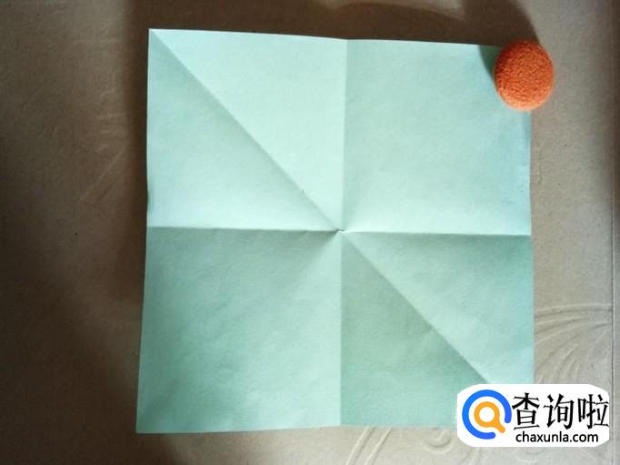 将折纸的任意一条对角线以及两条对称轴线折出来。