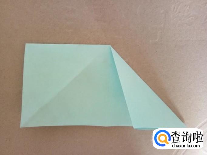 先把右边第一层纸提起撑开,按照折痕向左下方压折。