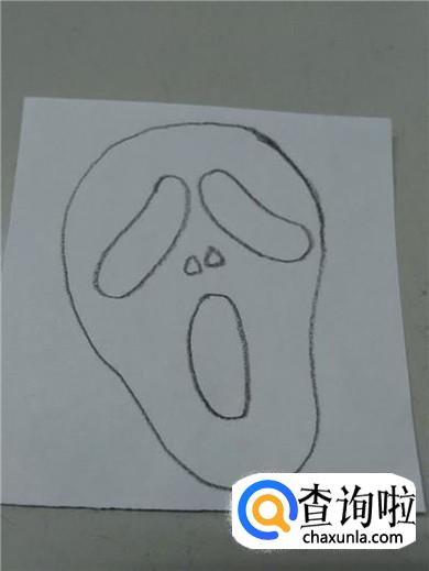 先用黑色彩笔在纸上画一个上宽下窄的形状,表示骷髅的脸型。