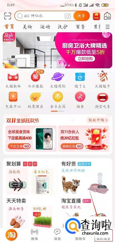打开手机淘宝,进入主页: