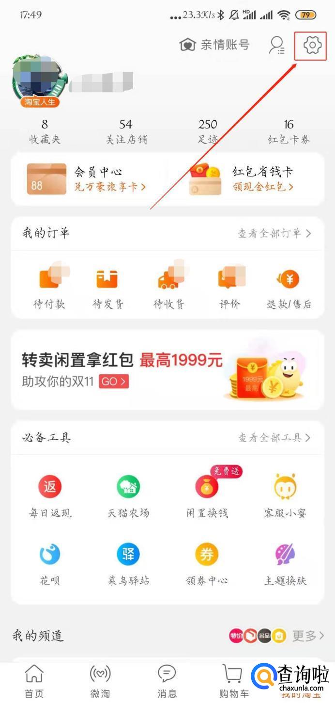 点击右下角【我的淘宝】,进入个人主页: