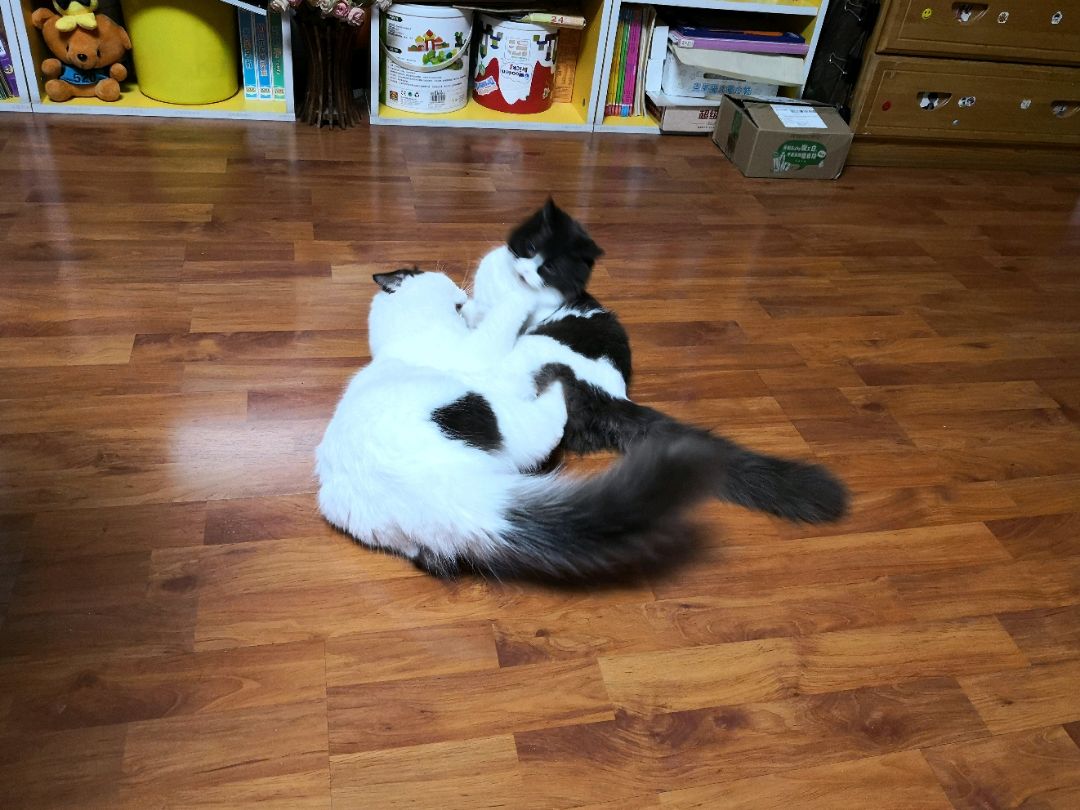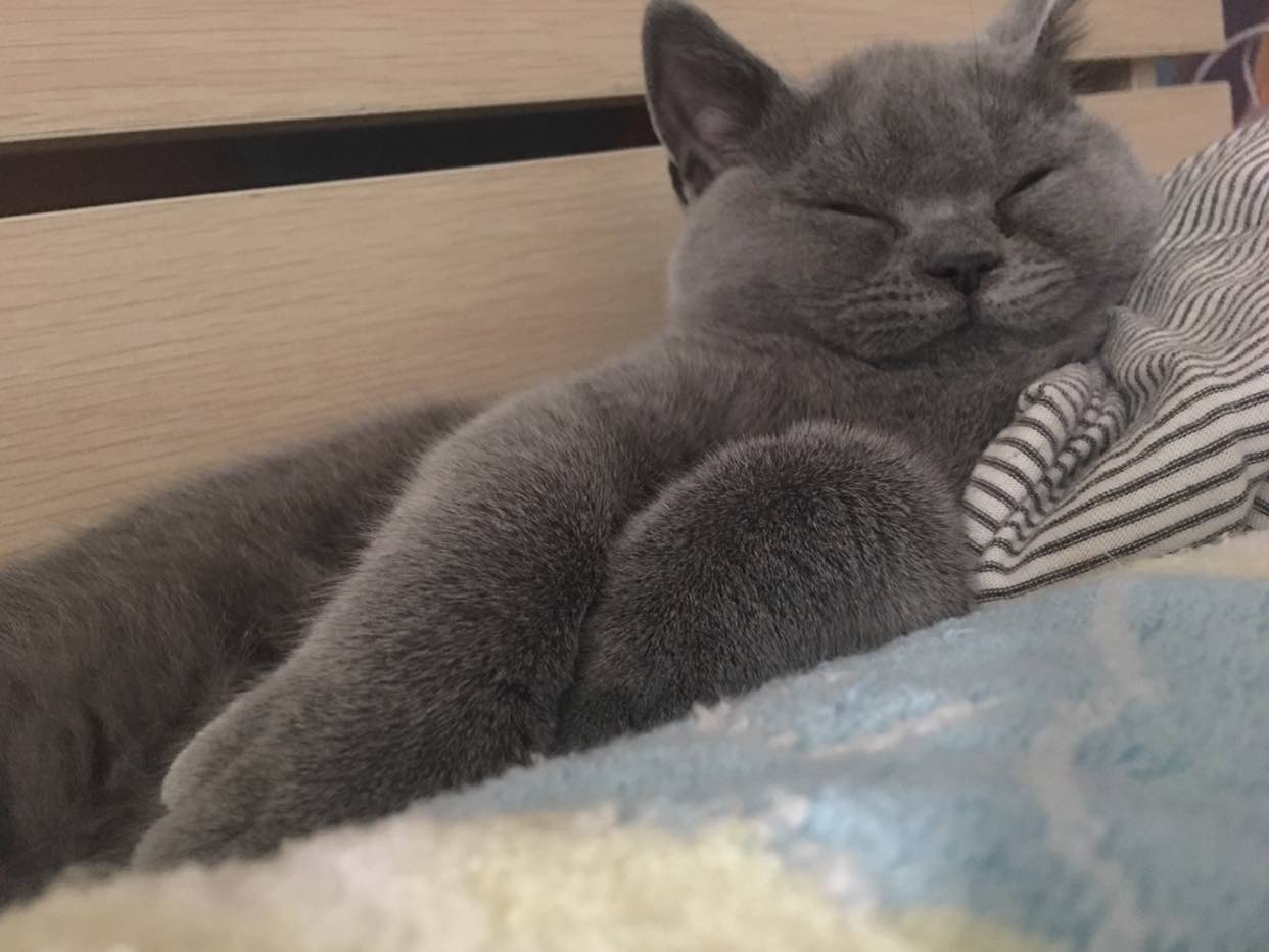 ,躺在我右边,给抓几下痒痒就呼噜噜,声音很轻。我家三口人,它俩就喜欢围着我睡!