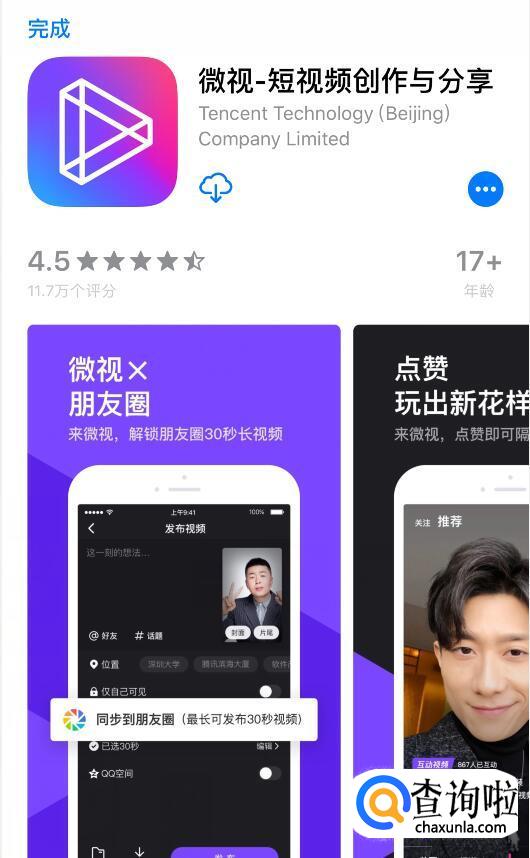 系统会自动弹出“微视”APP下载页面,按照系统提示,将微视下载并安装到手机上。
