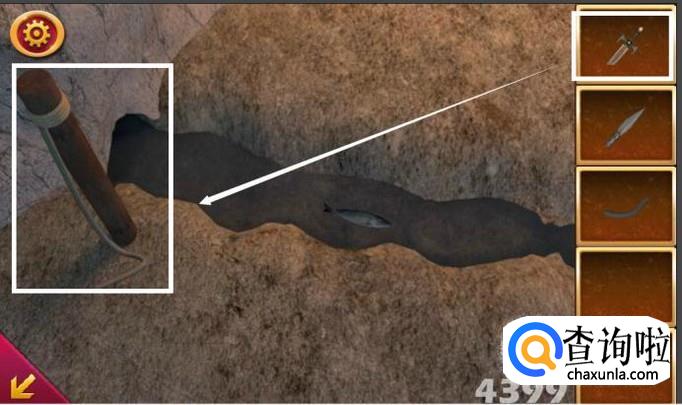 先点击“剑”之后再点击“木桩”,这时会拾取木桩上的绳子。