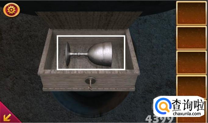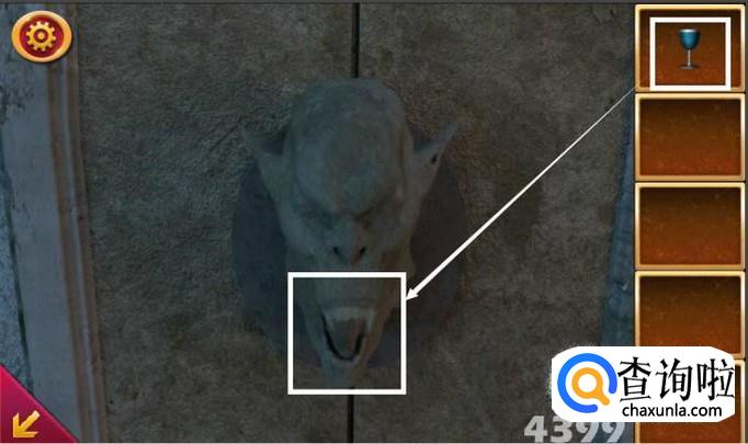 点击装满水的奖杯,再点击石门上的石狮。