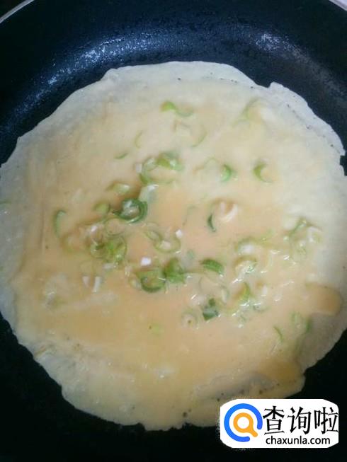待鸡蛋液底部成型后,用筷子轻轻将其移动,煎至蛋黄、蛋清全部成型,八成熟左右,即可盛出。