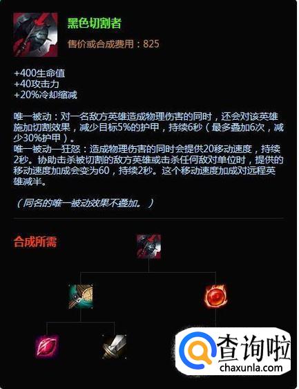 金克斯是脆皮英雄,到了后期一不小心就会被秒,而饮血剑和黑切这两件装备提高了金克斯的血量和续航能力。