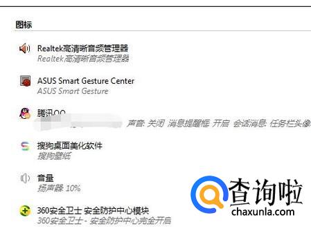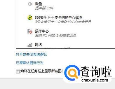 在打开的页面里会看到音频管理器的图标,然后在左下角取消始终显示任务和图标。