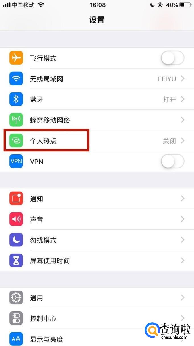 然后点击个人热点,如下图所示。