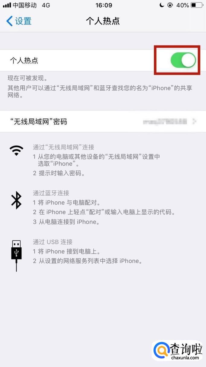 接着点击开启个人热点开关,如下图所示。