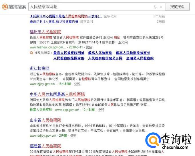 首先我们使用搜狗浏览器搜索人民检察院网址(根据实际情况来搜索不同省份人民检察院网址)然后进入人民检察院官网。