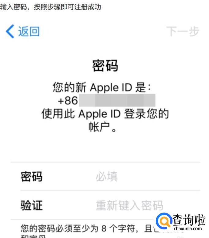 输入密码,按照余下的步骤点击,即可注册成功.