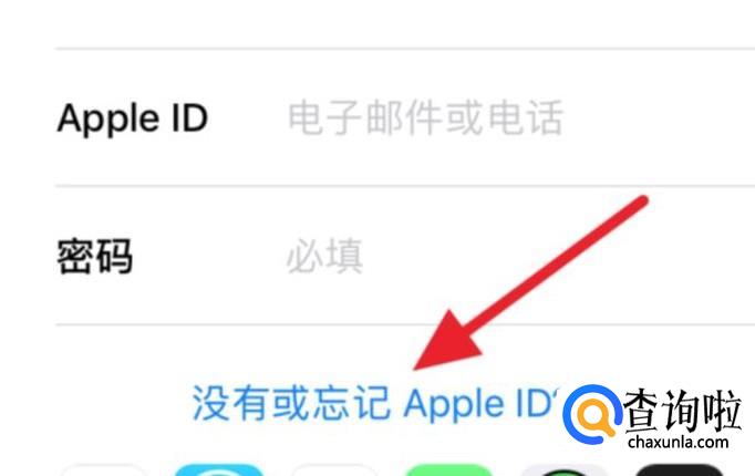 然后会看到下方有一个"没有或忘记Apple ID",点击.